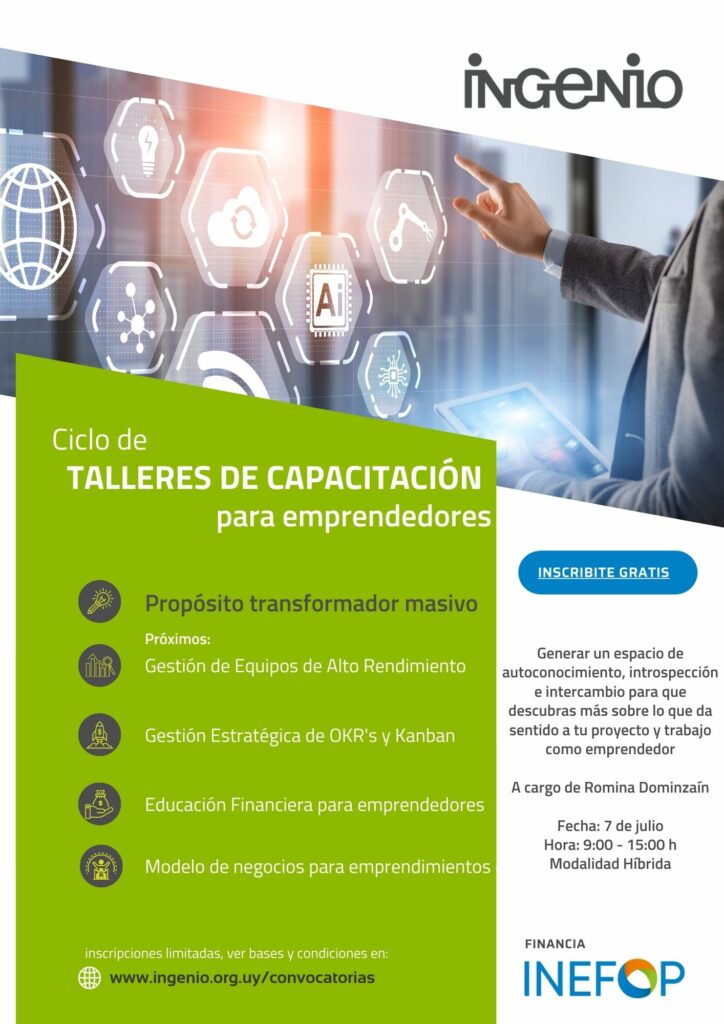 El Ciclo de Talleres de Capacitación para Emprendedores organizado por Ingenio y financiado por INEFOP comienza la próxima semana de Junio hasta Octubre.