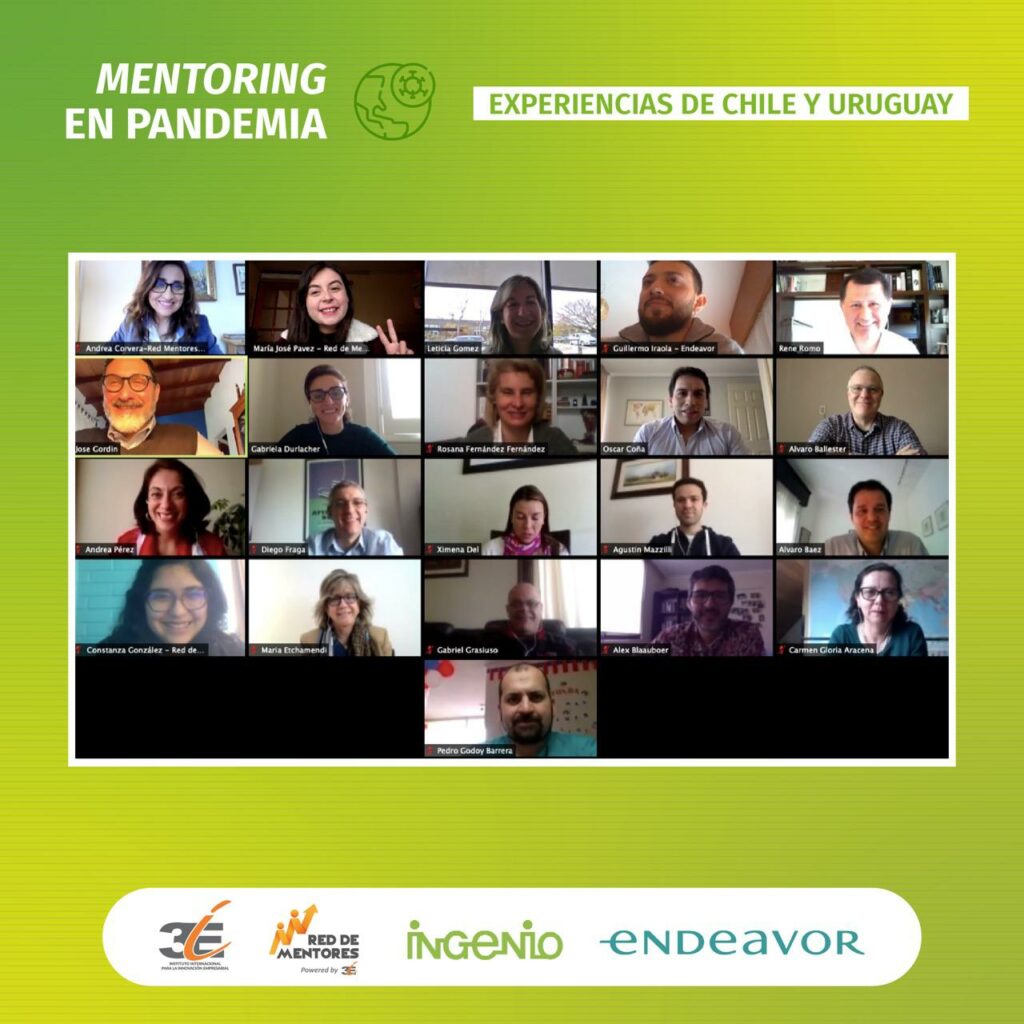 El 29 de setiembre, Ingenio, 3IE y Endevor, realizaron el primer encuentro regional de mentores con participantes de Chile y Uruguay. A partir de la exposiciones de Gabriela Durlacher (Endeavor, Uruguay) , René Domo (3IE, Chile) y José Gordín (Ingenio, Uruguay), se comentaron aspectos que redefinen la tarea de los mentores en el marco de la actual coyuntura generada por la pandemia del Covid-19.