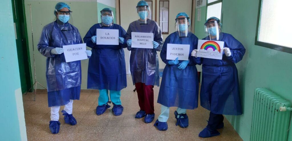 Y es que han puesto su “pequeña granjita de cinco impresoras [3D]” a fabricar y donar escudos faciales para proteger a los médicos y trabajadores de la salud, pertenecientes a ASSE, con la pequeña inscripción #SiLaPatriaMeLlama.